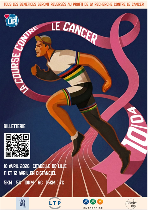 Le 10 avril prochain, les équipes de la délégation régionale de Lille chausseront leurs baskets pour participer à une course caritative contre le cancer. Organisée par l'association Cheer up EDHEC qui a pour vocation d’accompagner des jeunes atteints du cancer âgés de 15 à 25 ans dans la réalisation de projets qui leur tiennent à cœur, les fonds ainsi collectés seront reversés au CHU Oscar LAMBRET.